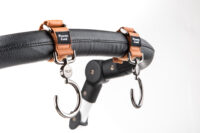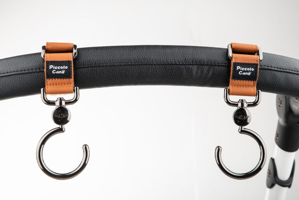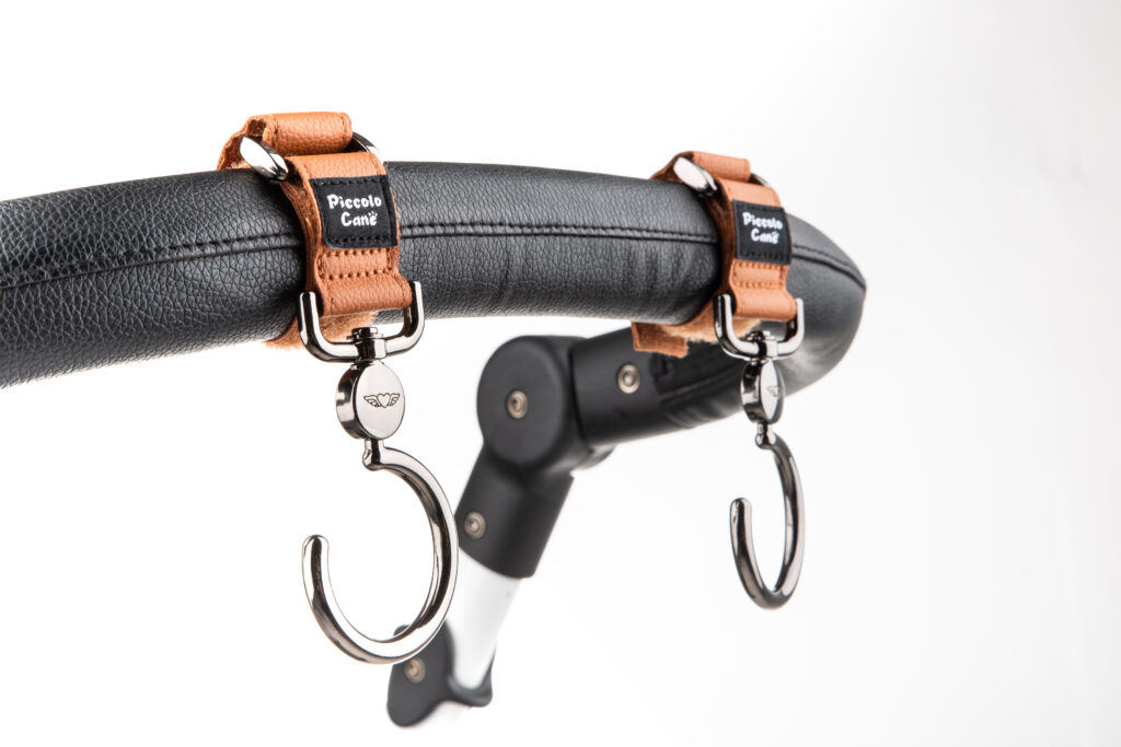 The Picolocane spin hooks made from faux leather offer a stylish and practical way to carry bags on the handle of a pram or pet stroller. They are strong easy to attach and designed to keep your essentials close at hand during walks or trips. The smooth faux leather finish gives them a premium look while the rotating hook provides extra convenience.